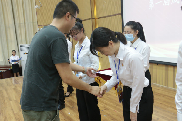 首先,校团管副主任余泽玲、校团媒副主任谢杰生分别宣读校团管第二届干部任职名单及优秀干部和干事名单、校团媒第一届优秀干部和优秀小编名单,希望全体干部们向这次受表彰的的学生干部学习。随后,校团委全体老师上台为优秀干部、优秀干事颁发荣誉证书以及为第一届成员代表颁发任职聘书。