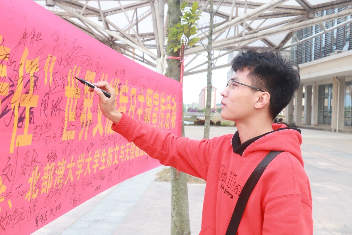 最后,同学们纷纷在宣传横幅上签名,以表示对此次活动的支持,贡献自己一份力量。此次活动旨在提高全校师生对艾滋病的自我防护意识,让全校师生更深入地了解艾滋病防治知识,携手共同防疫抗艾,共担防治艾滋病责任,进一步呼吁大家理解、关爱和不歧视艾滋病患者,正视和关注艾滋病,营造一个积极向上和健康文明的校园环境氛围。