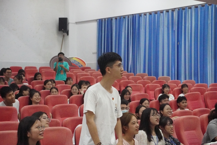 在党史有奖竞答环节中,大家积极参与,对答如流,场面非常活跃。接着,办公室干事黄琳雅带领大家重温入团誓词,唤起了每一位共青团员的团员意识,同时明确了团员的义务和权力。活动最后,大家合唱《我和我的祖国》。歌声饱含深情,对祖国的情感都化作流淌的旋律,使我们感受到了与祖国的血脉相连。