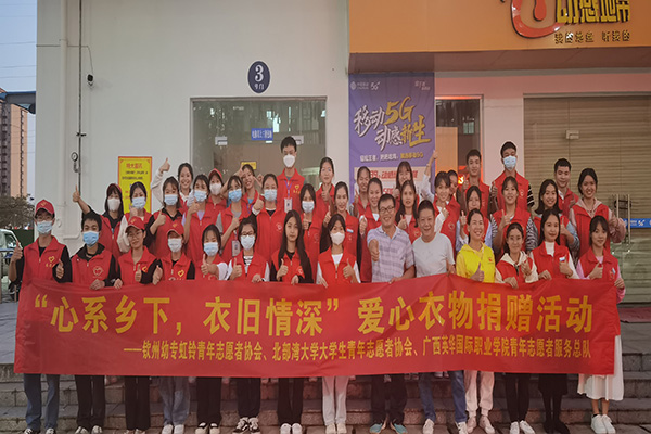 2021年11月21日,由共青团北部湾大学委员会主办,北部湾大学大学生青年志愿者协会、广西英华国际职业学院青年志愿者服务总队、钦州幼专虹铃青年志愿者协会及钦州市正能量公益协会共同承办的“心系乡下,衣旧情深”衣物捐赠活动圆满结束。