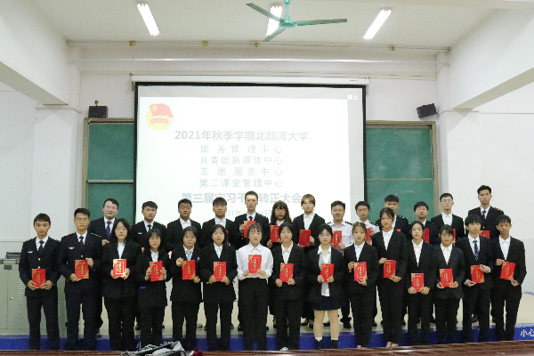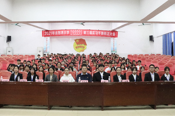 2021年11月26日19点,北部湾大学团务管理中心、共青团新媒体中心、志愿服务中心、第二课堂管理中心(以下简称团属中心)在12栋教学楼104报告厅举办了第三届实习干事转正大会。校团委挂职副书记李伟峰、校团委老师唐荣静、潘爱婷出席,团属中心全体成员参加此次会议。