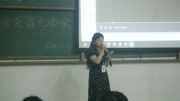 见面会现场气氛热烈,活动内容丰富多样。参会人员共同观看了协会视频,欣赏了由干部干事们带来的精彩节目。在有奖问答环节,彭珊书记围绕防艾与无偿献血的相关知识提出问题,会员们积极踊跃回答,不仅体现了同学们对公益事业的热情,还在问答中加深了对防艾和献血知识的理解。“为你打call”环节更是将活动氛围推向了高潮,会员们纷纷为自己心目中的优秀志愿者或协会未来的发展送上鼓励与祝福,一句句真挚的话语在教室里回荡,充分体现了协会成员之间的团结友爱和对协会的美好期望。接下来的听歌识曲环节同样精彩纷呈,当熟悉的旋律响起,会员们迅速抢答,现场欢声笑语不断,进一步拉近了彼此之间的距离。