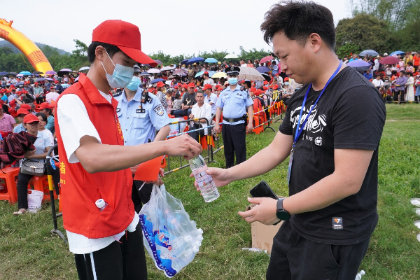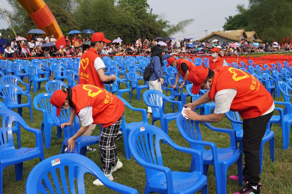 为弘扬壮族文化,践行志愿者服务精神,4月14日清晨,我校105名志愿者前往钦北区八寨原乡为本次活动提供了服务工作。郭泽同老师和同学们强调了安全问题后各小组同学前往各自的岗位开展工作。
