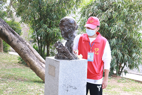 活动中,志愿者分成两批分别前往冯子材和刘永福故居,各小组在领取了工具之后立即展开清扫活动;小组成员各司其职,对故居庭院的落叶和杂草进行清理,蒙尘的雕像也被擦拭干净;在完成所有清扫工作后,志愿者们有秩序地参观了两个故居;最后全体合影留念,此次活动圆满结束。