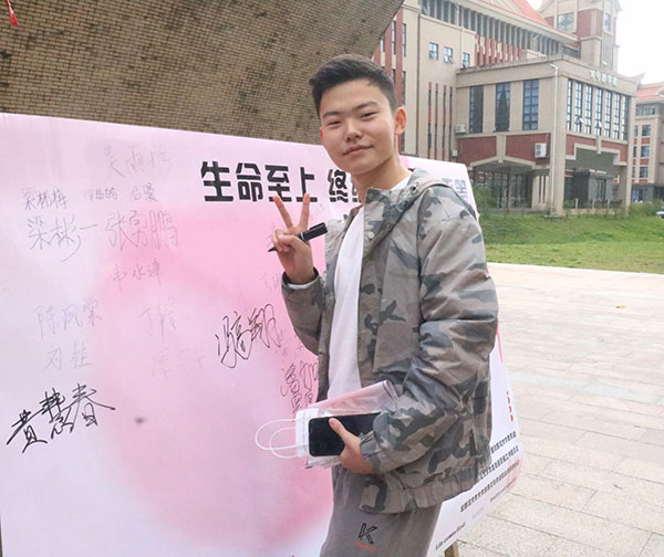 同学们在海报上签名