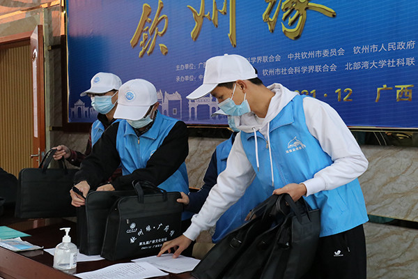 12月3日,志愿者们早早来到国际交流中心酒店做好前期准备工作,协助医护人员做核酸检测工作。到钦州东站接钦州市外参会人员、在报到处帮助参会人员登记以及分发论坛会务资料、给参会人员测体温、搬桌子……一切工作都在有条不紊地进行着。12月4日,志愿者们在校园里引导参会人员前往四号教学楼报告厅参加开幕式,并在签到处分发会务材料。礼仪队志愿者引导参会人员入场,并负责引导领导上台讲话。
