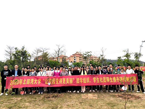 阳春三月,草长莺飞。3月13日下午,2023年北部湾大学“让校园变得更美丽”团学组织、学生社团师生携手种绿树活动在社区医院北侧空地顺利开展,校党委副书记陈锦山与校友代表、团学组织学生干部、演讲协会与书法协会会员一同参与植树。