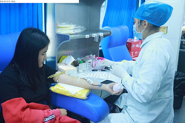 活动前,志愿者提前到达活动现场布置场地,活动负责人对志愿者进行工作安排,静候同学们的到来。活动进行的过程中,同学们在志愿者的指导下有序地进行填表、录入信息、验血、献血,整个过程有条不紊。志愿者是一道亮丽的风景线,红色马甲映出他们脸上友善的笑容,热心真诚地为大家服务;同学们怀着对他人献爱心的热忱之心,以及在填写献血者登记表时坚毅的脸庞、在血车上坚定地伸出手,无不体现出他们的爱心。寒潮来袭也没有影响同学们和志愿者的热情,大家共同努力,把所有善意汇聚,用血液点燃爱心。