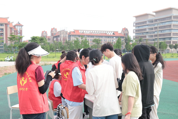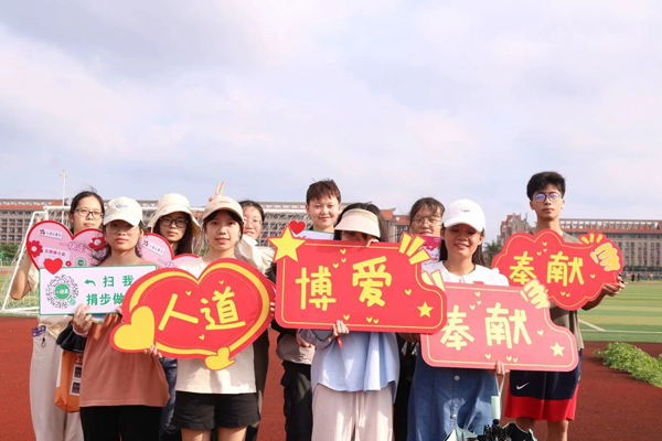 为积极响应自治区红十字会、自治区文明办、共青团广西区委、广西志愿服务联合会联合开展的“5.8人道公益日”活动号召,我校开展了相应的活动。活动开始前,志愿者们提前到达场地并进行布置,参赛者们在志愿者们的指导下带上红丝带、贴上贴纸,并做好赛前的准备,最后在主持人的号令下,活动拉开了帷幕。尽管下午烈日当空照,但依旧抵挡不住湾大学子的满腔热情;而时不时吹来的凉风,吹散了他们的热意和汗水,却吹不散他们乐于奉献的热情。三圈的跑道很短,公益的道路很长。各个参赛小队在完成两次打卡任务和三圈赛道并完成微信步数捐赠之后,本次活动圆满结束。