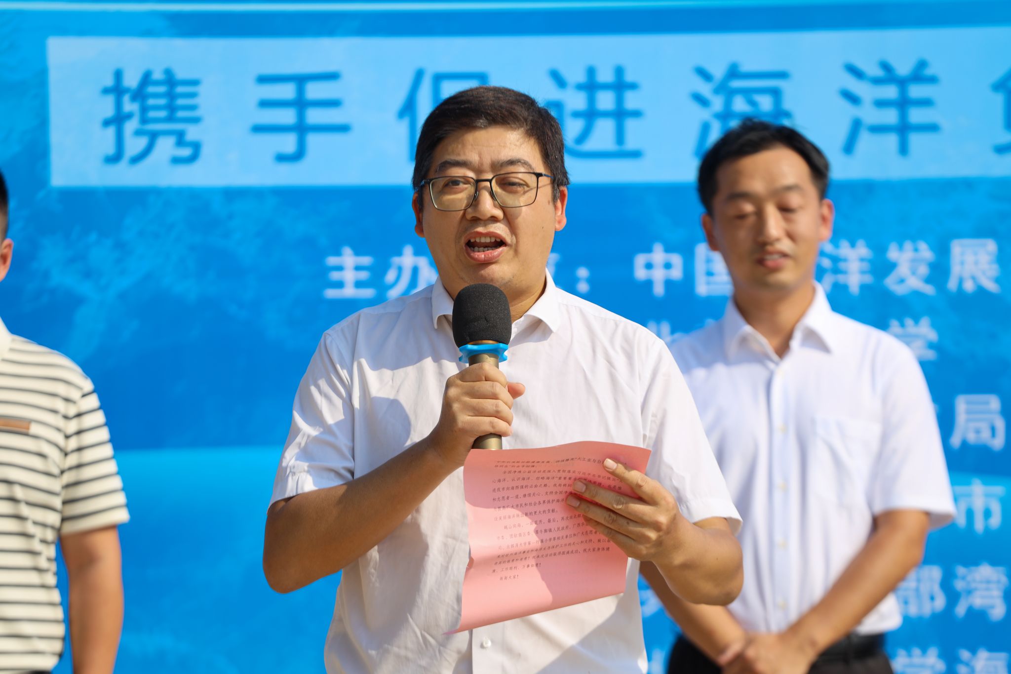 市海洋局副局长何启林总结了钦州市近年海洋保护事业的发展,鼓舞青年志愿者们积极投身到海洋保护事业中来,并宣布活动正式启动。