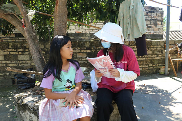 学生与村民交谈