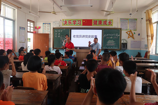 7月12日上午7点整,全校共十二支暑期“三下乡”实践团从北部湾大学出发,前往玉林市博白县东平镇富门村。带队的李宝石老师向同学们提出了几点要求,她勉励大家把握好这教育实践活动的契机,感受新农村的发展和变化,在活动中不怕吃苦,乐于奉献,培养自己的社会责任感,提高自己的综合能力。在简短的休整之后,校长林基明在村委会议室为富门村驻扎的两支实践团队开展暑期活动的座谈会。会上,校长为各队员开展活动教育,团队代表表达对本次活动的看法和建议。随后在北部湾大学驻村第一书记高祥谋的带领下,团队来到富门村小学为学生们展开党史宣传教育。活动以主持人宣讲党的光辉历史和习近平新时代中国特色社会主义思想内容开场,通过党史知识宣传、爱国动画片、老党员讲党史故事、为祖国献言、签名等活动,加强学生的爱国教育,并且在活动中设置各种奖项,引起学生们的兴趣。活动的最后队伍对两名老党员和驻村书记进行采访,并为老党员送去慰问品。老党员还向队员们谈到,在党和社会各界的帮助下,他们的生活水平得到了极大提高。