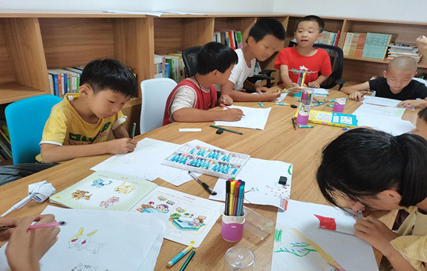 7月13日上午,服务团成员组织开展了抱抱团等小游戏,迅速与孩子们熟络起来,并开展了安全教育小讲堂,将防溺水、防火灾、防食物中毒等作为安全教育的重点内容。此外,还展开了英语启蒙活动,以轻松愉快的方式带领孩子们领略不一样的语言世界,共青团钦南区委员会黄钰楠书记等三人也到场参与组织和协助。7月14日上午,为激发和培育孩子们的爱党爱国情怀,服务团成员组织孩子们开展了红歌比赛,《没有共产党就没有新中国》等红歌被孩子们以饱满的热情演绎了出来。同时,服务团成员为孩子们进行学业辅导,还为孩子们分发了学习用品,让他们感受到来自社会的温暖。7月15日上午,服务团成员为孩子们开展了美术小课堂,让孩子们充分发挥想象力,将自己内心最想表达的场景、人物或物品画出来。最后,服务团将画作收集起来,为孩子们举办了一个小型“画展”。