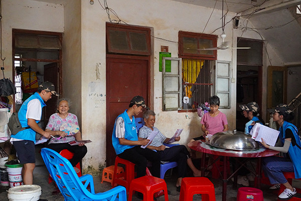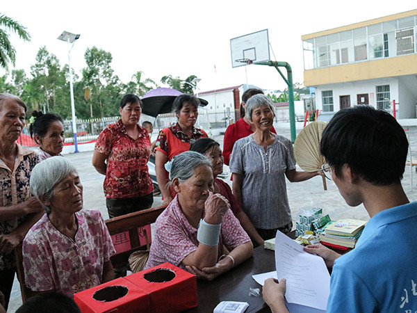 到达良荔村后,为了解当地村民们对禁毒防艾、无偿献血相关知识的了解程度,服务团对村民们展开了问卷调查。村民们热情地配合完成问卷工作,志愿者们也为所有参与的村民赠送了洗衣粉、牙膏牙刷和小本子等小礼品。