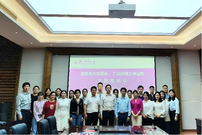 在广西师范大学,我校团干部参观了该校桂学博物馆、校园育人文化景观、校团委团建文化墙等设施,随后进行交流座谈会。在会上,该校团委书记张亮亮介绍了共青团工作基本情况,双方人员就党建带团建、共青团宣传思想文化工作、团干部队伍建设、志愿服务品牌打造、“第二课堂成绩单”制度、学生社团建设、社会实践等工作进行充分交流探讨。