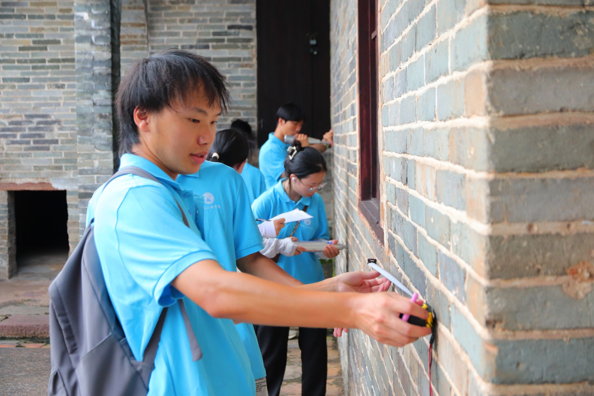 建筑工程学院实践学生对传统建筑进行检测(马培皓 摄)