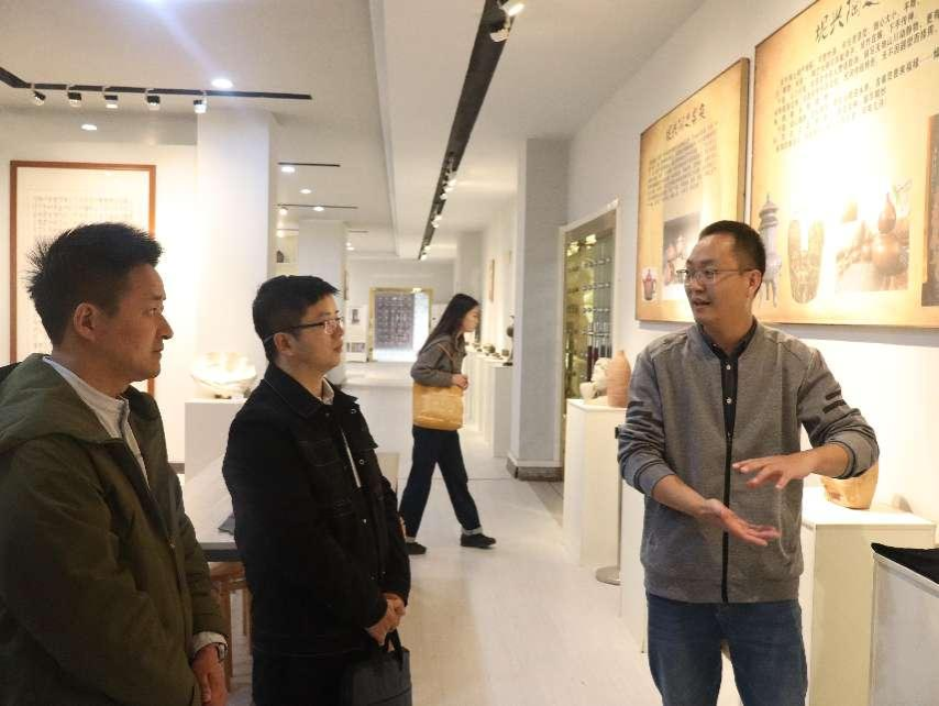 罗瑶书记(左二)一行参观坭兴陶艺术展