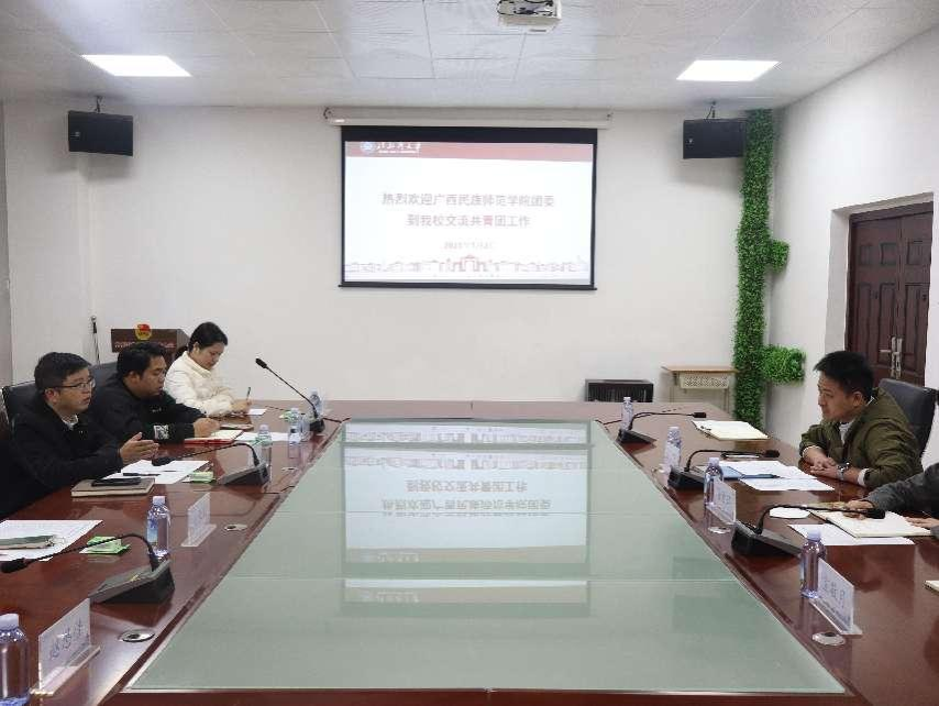 2025年1月3日,广西民族师范学院团委书记罗瑶一行5人到我校交流共青团工作,校团委全体成员热情接待,在大学生活动中心201会议室与来访客人进行了座谈交流。