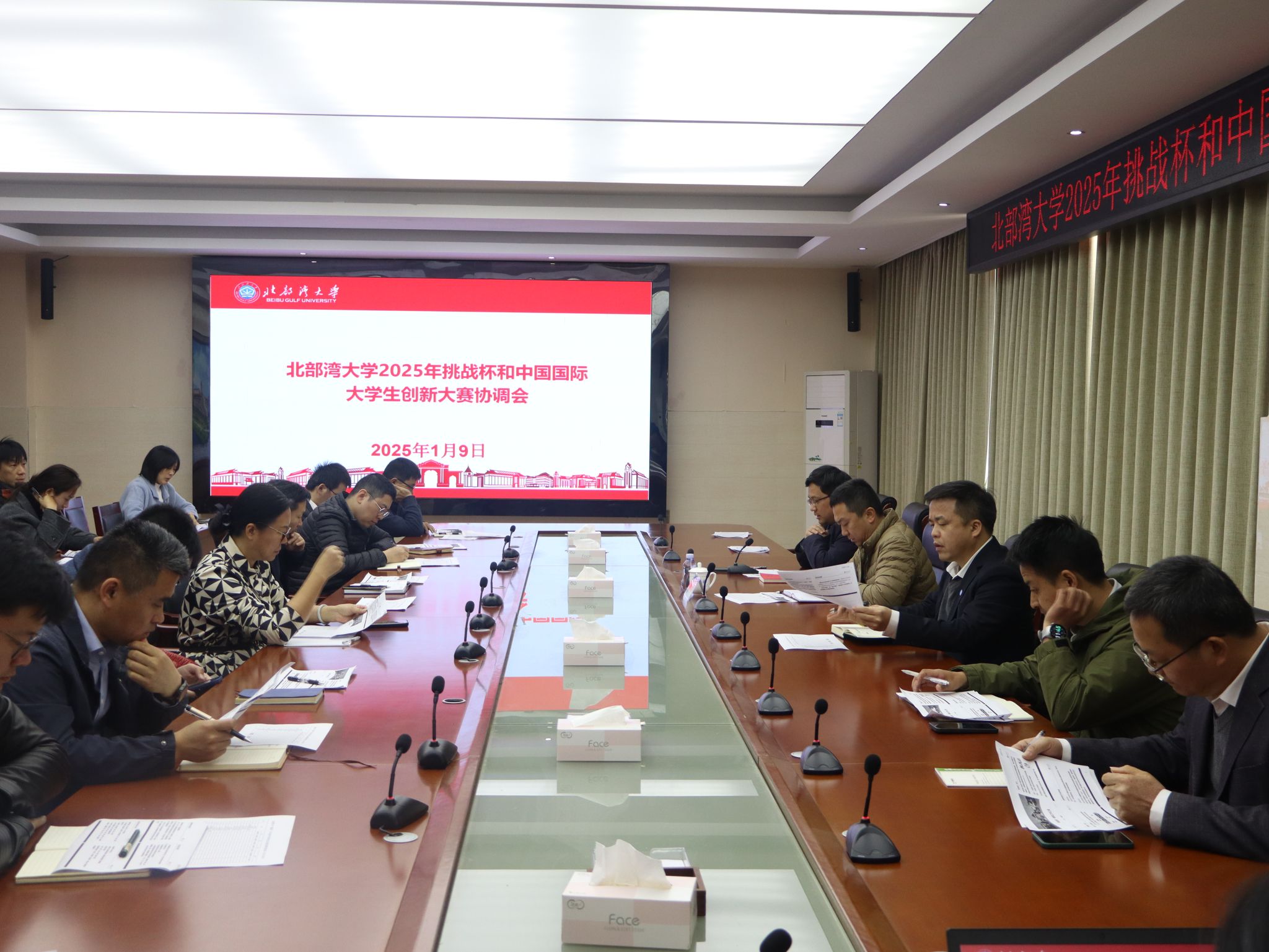 2025年1月9日,学校召开2025年挑战杯和中国国际大学生创新大赛协调会,就两项赛事的校赛组织工作进行启动布置。校党委副书记陈磊出席会议,教务处、校团委、科技处等部门负责人,各学院院长及相关人员参会。