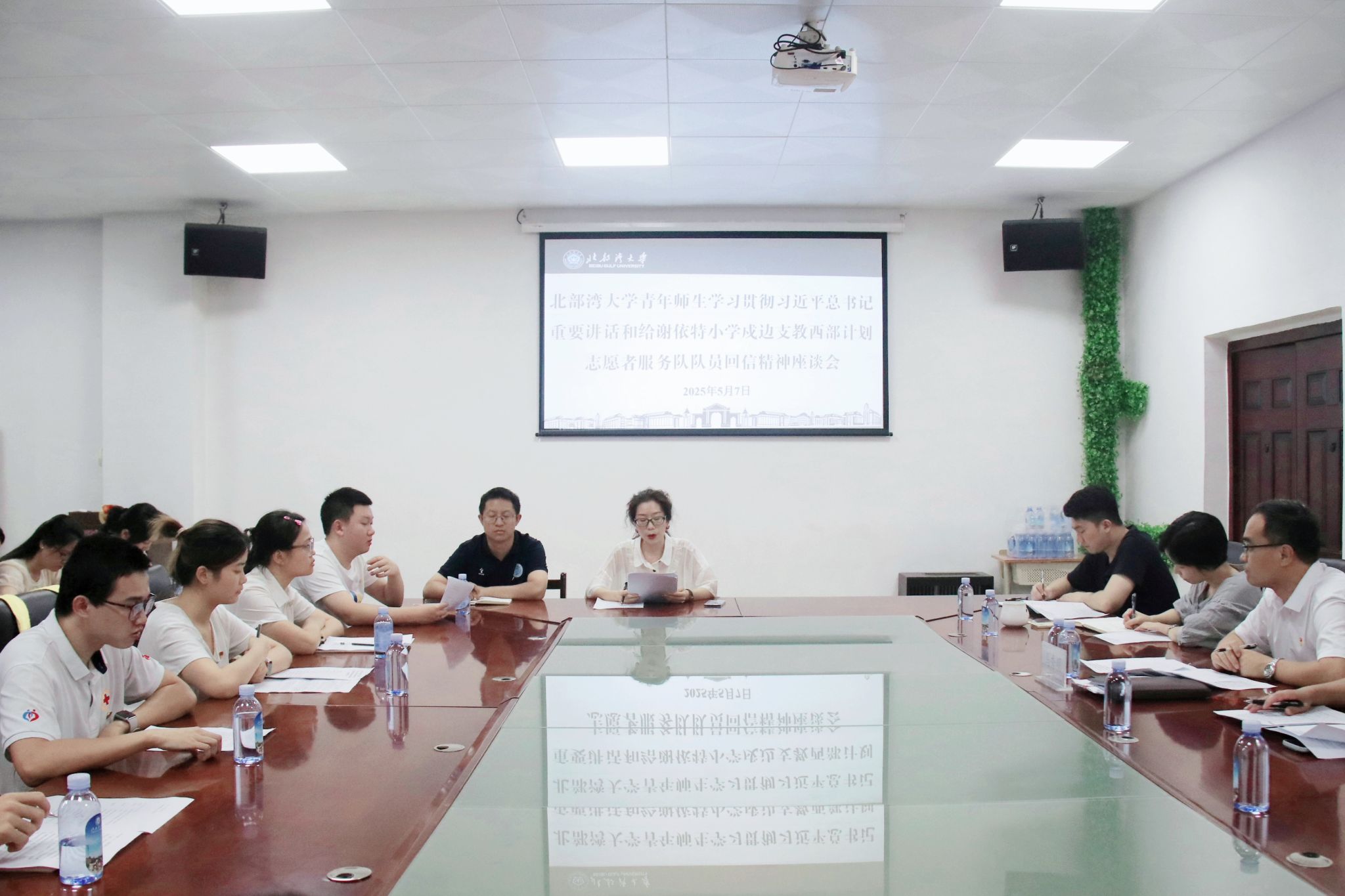 5月7日下午,北部湾大学青年师生学习宣传贯彻习近平总书记重要讲话和给谢依特小学戍边支教西部计划志愿者服务队队员回信精神座谈会在大学生活动中心201举行,校党委常委、副校长马秀明出席,各学院团委负责人、各领域优秀青年学生代表30余人到场参加。