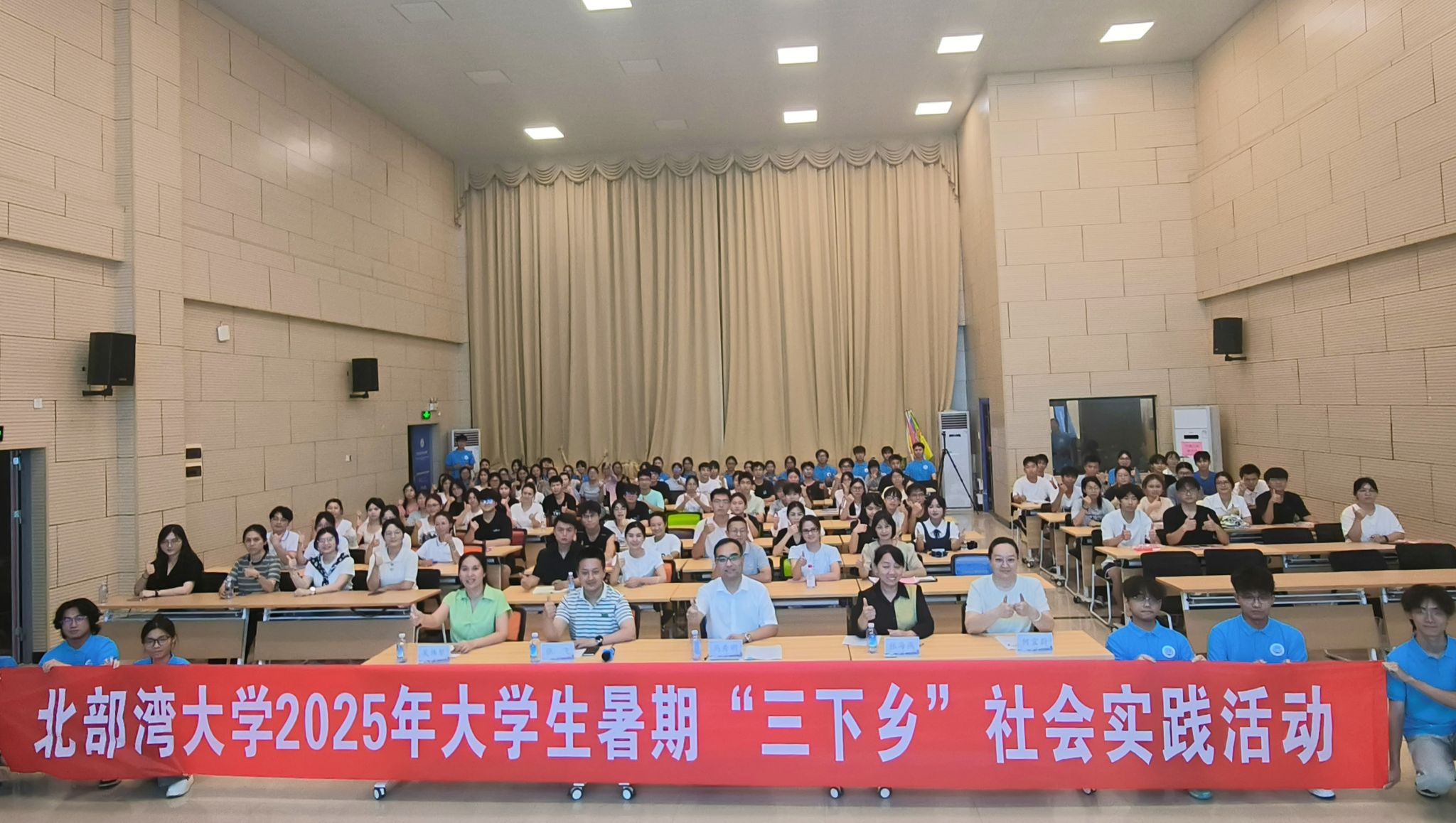 2025年7月6日晚,北部湾大学2025年暑期“三下乡”社会实践活动出征仪式在众创空间301报告厅举行。校党委常委、副校长马秀明,校党委常委、组织部部长张海燕出席,学校2025年大学生暑期“三下乡”社会实践活动立项团队学生代表100余人参加了仪式。
