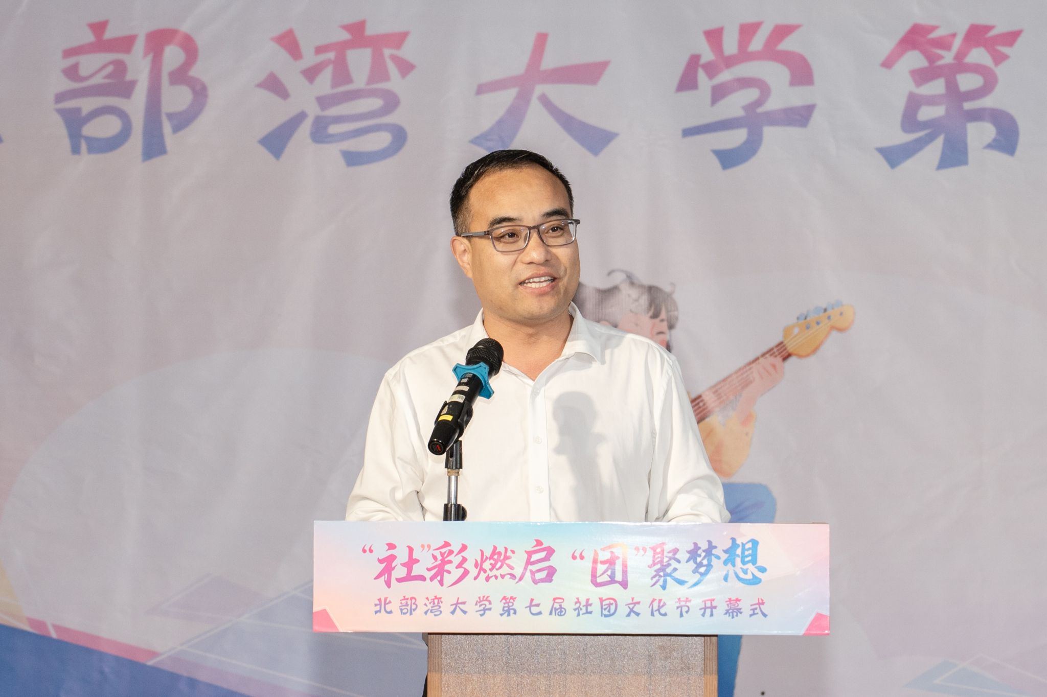 2025年10月28日,北部湾大学2025年第七届社团文化节开幕式在大学生活动中心举行,现场进行了文艺演出及社团风采展示。校党委常委、副校长马秀明出席开幕式并致辞,校党委学生工作部、校团委等相关部门代表,全校学生社团、团属学生组织成员及指导老师代表140余人到场观看。