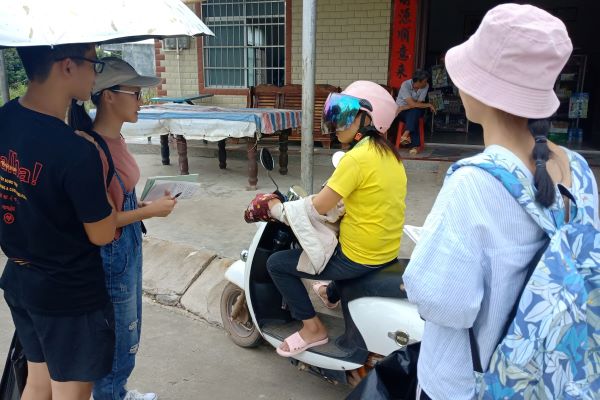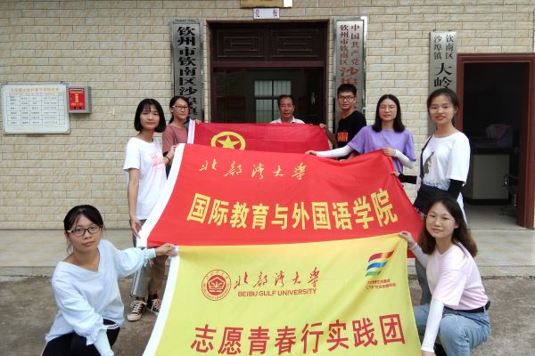 2019年7月7日,北部湾大学国际教育与外国语学院志愿青春行实践团成员李民杭,张艳红、周玟彤、杨艳、石文清、李舒琪和黄丽梅等7人在指导老师蓝水萍的带领下,来到了钦州市钦南区大岭村,向村委庞亮春主任以及村民调研了村里的扶贫、留守儿童、辍学率、英语学习等情况。