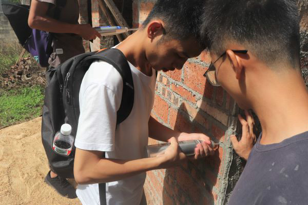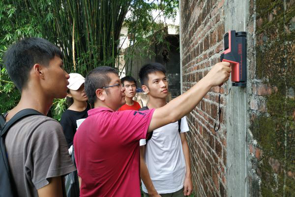 7月11日,调研团前往大番坡镇大番坡村进行为期一天的“房屋结构检测与维护,助力乡村美丽建设”调研活动,目的是为农村部分房屋结构进行检测,并向住户提供维护建议,增强农民对房屋结构维护意识,推动乡村建设。在居民代表及相关负责人配合下,在了解当地的建筑概况后选择了几处建成年限不同的房屋进行结构检测鉴定,并与标准数据分析得出结果。通过与当地居民沟通,对现存建筑物的维护提出建议。