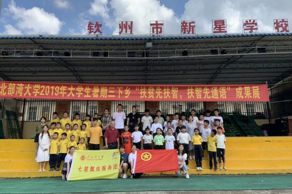 为进一步深入农村,了解农村语音语言交流等方面情况,2019年7月17日由北部湾大学人文学院的18级汉语言文学专业的7名学生组成的“七星瓢虫”团队来到钦州的新星学校进行普通话宣传。第一天来到钦州市新星学校,张校长以灌输“爱心、耐心、细心”的思想,教给团队成员教学方法,作为一名老师,做到“三心”是必要的。