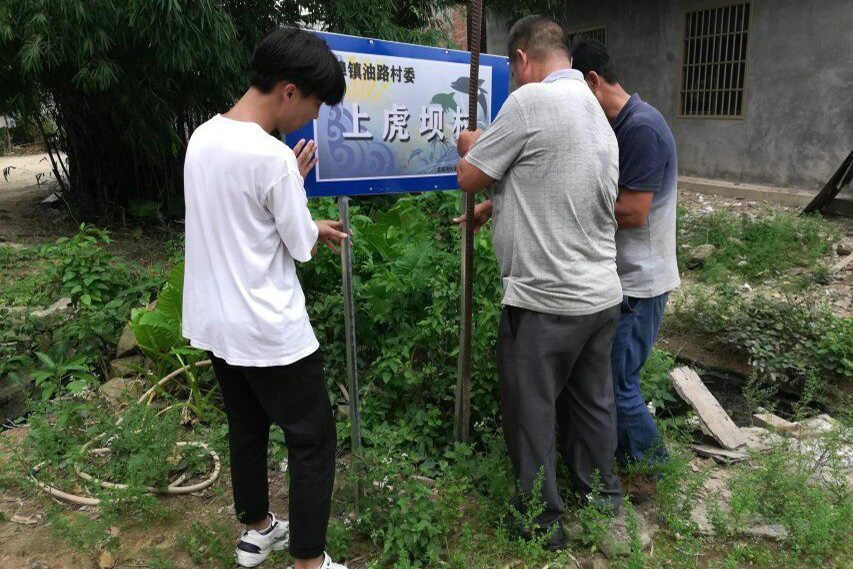 此次活动内容包括乡村美化、环保知识宣讲和入户走访调研等。针对乡村环保治理,团队志愿者有针对的在村民聚集点开展环保知识宣讲活动,重点介绍新时代背景下建设美丽绿色乡村国家政策,开展垃圾分类有奖知识问答活动,普及村民环保知识;在村路主干道张贴环保标语。随后,志愿者们分别在油南村、陈屋村、上虎坝村等村落,面向村民开展环保知识入户宣讲和调研。活动期间志愿者们共发出宣传资料400多份。志愿者发挥专业优势,为油路村设计创意指示路标和提示牌,并且制作出12块,内容包括村委、村名及导向指示,同村委一同安装在村庄指定位置,从而提升村庄的美观形象。同时,每位同学积极运用自己的专业知识,为乡村发展建言献策,得到了村委会和村民的一致认同和好评。