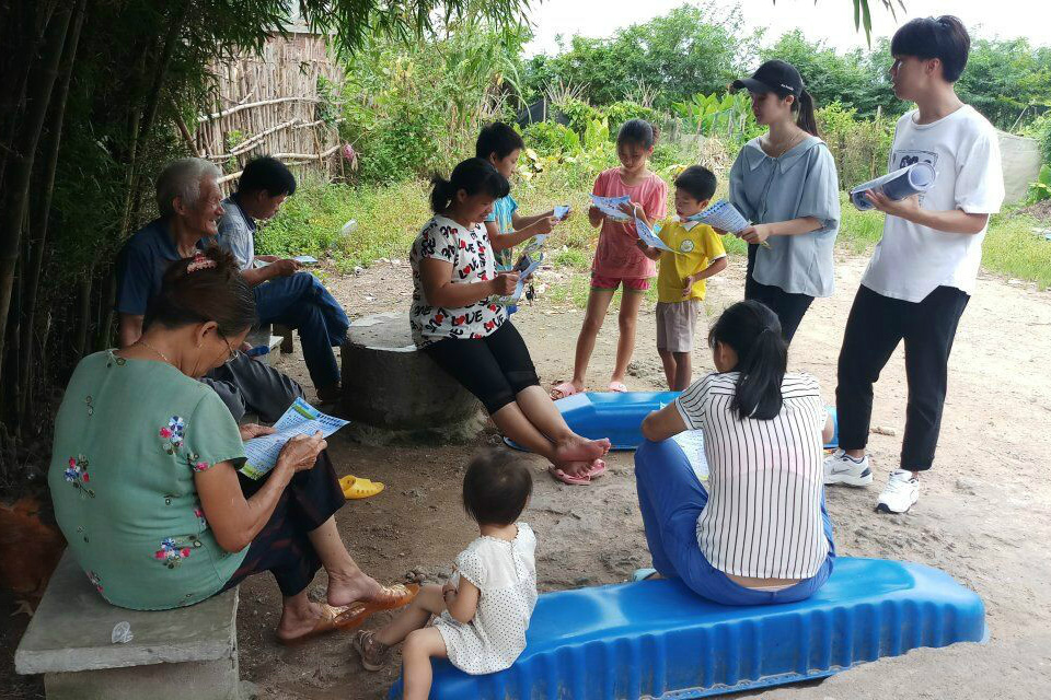 “践行美丽绿色乡村”实践团队到村民集聚点进行宣传
