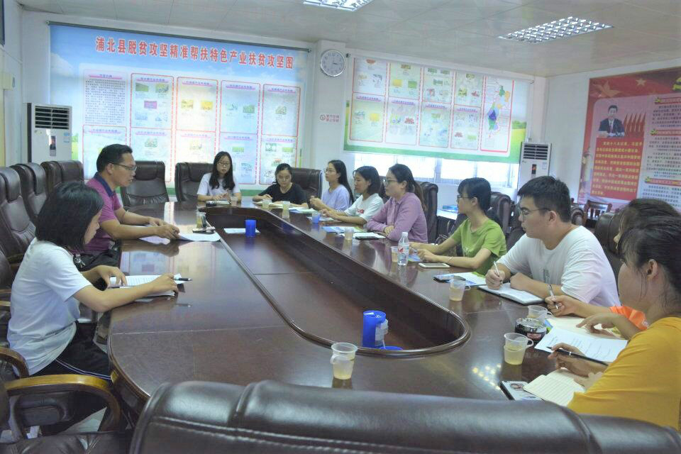 8日下午,实践团队与扶贫办李贾强副主任进行了一场扶贫专题座谈会,在座谈会中,共同探讨关于浦北县产业助农的政策问题。9日上午,北部湾大学百香果产业脱贫调研团队到达浦北县江城区青春村与第一书记谢炳远也进行了一场关于青春村产业发展座谈会,会议中,第一书记向实践团队介绍了一些关于青春村及青春村百香果产业推广种植的基本情况,书记提到村集体经济收入主要来源于几个方面,一是入股分红,二是商铺出租获得租金,三是百香果产业种植园以及企业资金管理费用。书记特别提出,产业奖补,务工奖补政策的出台非常有利于青春村脱贫攻坚工作的顺利进展。使得青春村于2016年完成脱贫,并获得“扶贫成效先进村”的称号。9号当天下午,谢炳远书记和黄主任带领调研团队一起到达百香产业园基地进行实地考察,书记介绍了百香果产业种植园的面积以及种植的一些基本条件和百香果的品种。实地调查中,实践团还到各户农家中了解农户情况,并对相关问题提出了相关建议,实践证明,产业扶贫,激发贫困群众发展生产的内在动力。