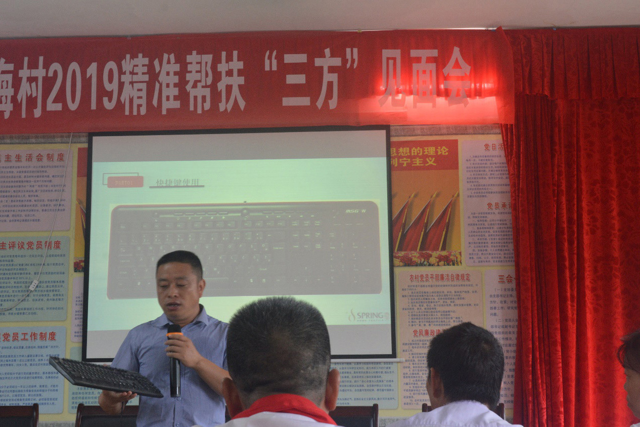 为做好我校2019年定点扶贫工作,7月9日,我院党委书记卓杰先,党委副书记李贤阳以及我院组织的“科技支农传递温暖,知识下乡助力发展”帮扶团去往玉林市博白县东平镇,为村民以及村干部进行办公信息技术的宣讲。