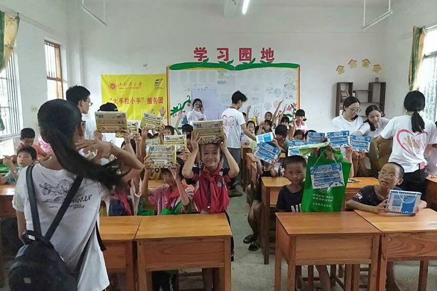 7月9日上午,在石油与化工学院领导张海燕书记、张飞、唐荣静老师的带领下,“大手拉小手”关爱留守儿童服务团队志愿者来到了博白县东平镇良荔村小学。为这里贫困山区的留守儿童带去一份温馨的亲情陪伴。