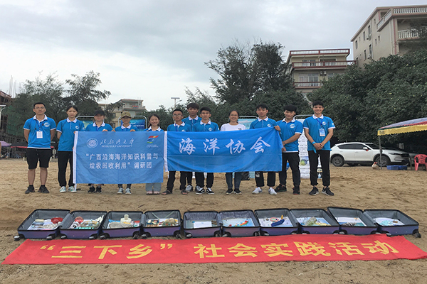 为了提高渔村及内陆村民的环境保护意识,加强海洋环境及海洋生物的保护,2019年7月10日,北部湾大学“广西沿海海洋知识科普与垃圾回收利用”调研团在北部湾沿海村庄开展了志愿者暑期文化科技卫生“三下乡”社会实践活动。本次活动由林美芳老师指导,参与人员有“海洋知识科普与垃圾回收利用调研团”全体成员,北部湾沿海附近村民及游客。