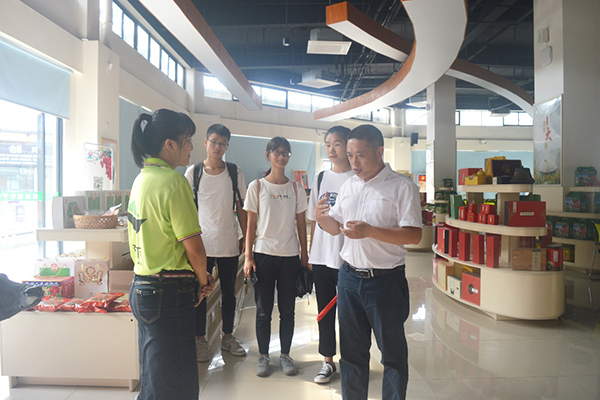 7月8日上午,电信学院党委副书记李贤阳和实践团成员来到灵山县电子商务公共服务中心,得到灵山茗和茶叶合作社公司经理滕高仲,灵山电子商务O2O展示中心广西益天下农业有限公司总经理姚翠玲,办公室李淑燕主任的热情接待,并在李淑燕主任的陪同下,大家先后参观了电子商务的展厅、酒庄,一路上的交谈中,实践团成员们简单了解到电子商务展厅的合作商以及展厅的发展情况。