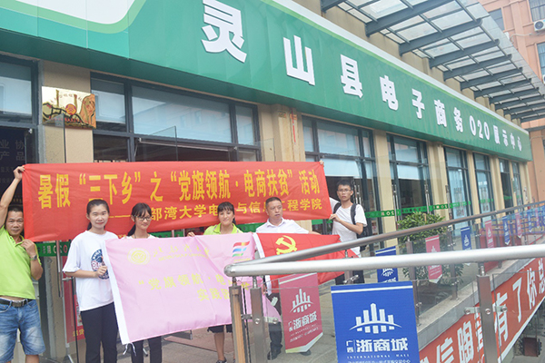为了响应党的十九大报告中提出的乡村振兴战略,更好地体验、了解“党旗领航·电商扶贫”大集活动下对助力脱贫攻坚、乡村振兴带来的发展成果,引导更多的乡村走出自己的电商之路,实现城乡与电商的全面结合。电信学院组织了“党旗领航·电商扶贫”实践团前往灵山县电子商务公共服务中心进行调研与实践活动。