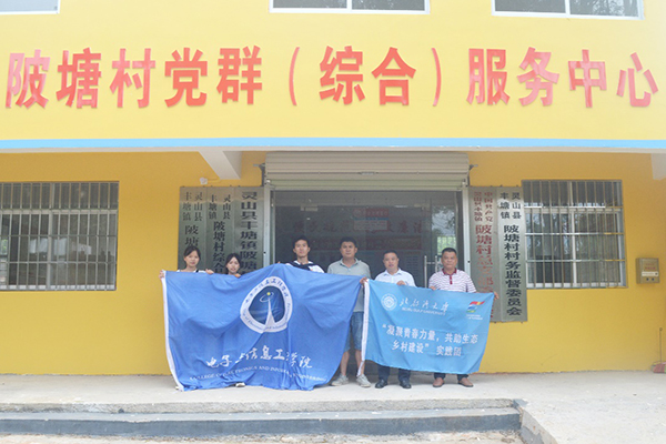 合影留念(右一为方鹏主任,右二为李贤阳副书记,右三陂塘村团支书,及实践团成员)
