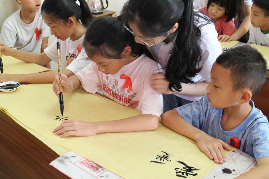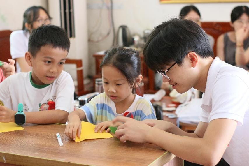 活动伊始,服务团成员同孩子们一起共舞手指操,以此打破陌生感、拉近彼此距离。随后,服务团成员开展了防溺水、防艾、禁毒、防性侵等一系列主题安全教育活动。他们采用生动有趣的方式,让孩子们在轻松愉快的氛围中掌握了安全防范知识,增强了自我保护意识。此外,服务团成员与孩子们一起参加书法、彩绘、折纸等趣味活动,让孩子们感悟中华优秀传统文化的魅力,充分发挥孩子们的想象力和创造力。活动最后,服务团成员们与孩子们合影留念,并衷心祝愿孩子们健康快乐、茁壮成长。