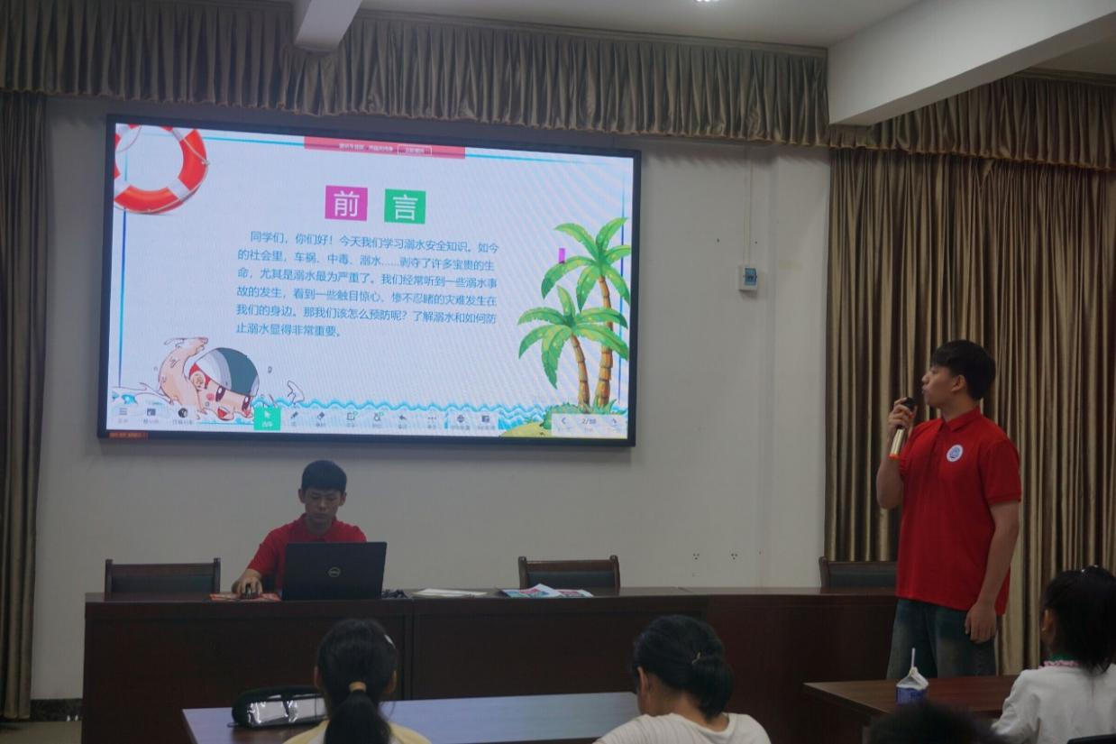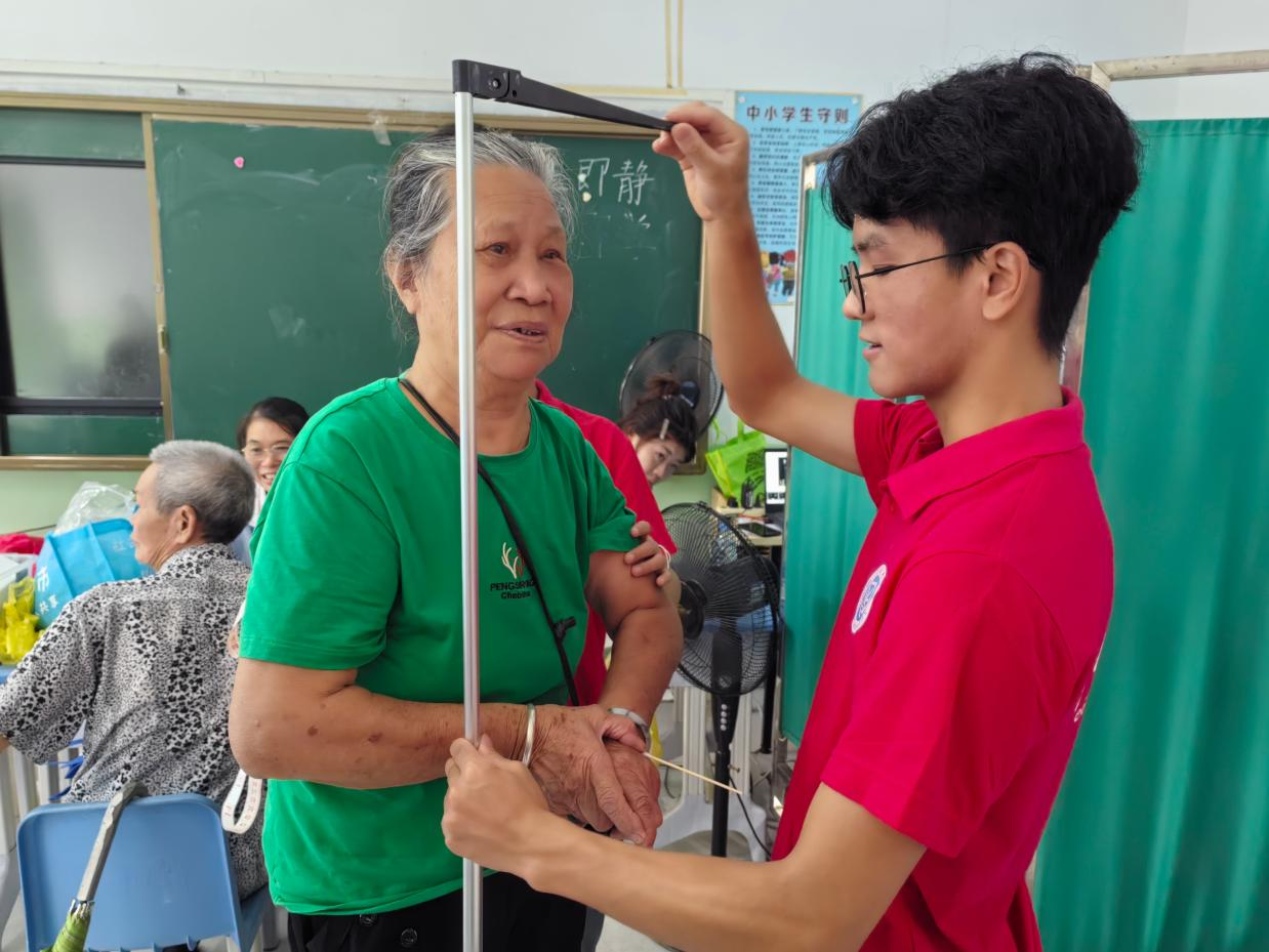 团队成员发挥青年学生的爱心与奉献精神,助力社区的助老爱幼工作。在钦州市三宣堂社区,团队成员们协助社区为老年人进行体检,帮忙录入信息、填写表格等;对于出行不便的老人,还入户提供测量血压服务。团队还为社区的孩子们举办了“垃圾分类趣味游戏”“地理培训课”“英语 ABCD 字母趣味教学”等课程,为青少年们带来了一个内容丰富的暑期班。团队在钦南区易地扶贫安置小区也为孩子们开设了“气物压强实验”“知识问答竞赛”“合唱课”等趣味课程,为当地留守家中的儿童送去关怀。
